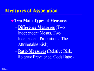 variables are. Measures of association can be measured as a difference between two measures, or as ratio measures. |