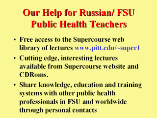 | Information has always improve health. Our program is different from Telemedicine, which use expensive telecommunication technologies to a small number of sick people. But as people will always get sick, we believe that I-PREVENTION together with Telemedicine will improve health in Russia. |