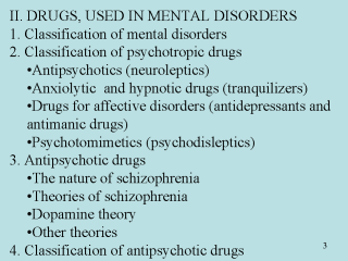 action 6. Effects of antipsychotic drugs 7. Pharmacokinetics 8. Anwanted effects 9. Clinical use and efficacy 10. References |