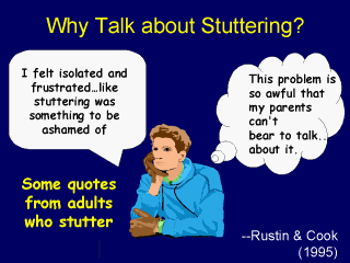 stuttering, and potentially complicate treatment. Emotional element can become a significant or the most signicant component of the disorder for some people (Sheehan) A variety of cognitive based therapies have been reported in the past decade, trying to help person who stutter re-evaluatate or assess the negative attitudes about speaking and themselves. |