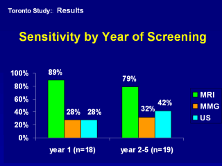 trend towards lower sensitivity of MRI in the 2nd year of screening compared