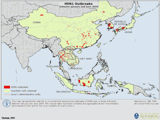 این نقشه بخش ها یا استانهایی را که طغیان آنفلوآنزای