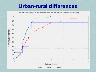 | We identified 21 discrete-core studies with rates from urban sites, 3 studies from rural sites, and 42 studies with mixed urban-rural catchment areas. Two further studies provide rates for both urban and rural categories. Significance tests can only be constructed for differences between the urban and mixed categorizations. We found that studies conducted in urban versus mixed urban-rural catchment areas generated significantly higher rate distributions. |