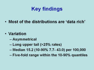 rates. The median value for rates was 15.2 per 100,000. The distribution was