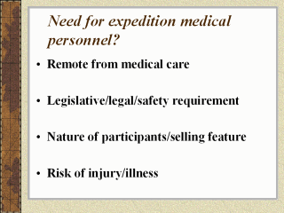 Expeditions need medical personnel; sometimes for different reasons. Some of the main reasons are listed here.