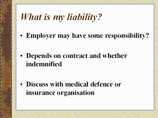 | Liability is an interesting area. For most medical personnel, they will not be registered outside of their country of practice and registration. It is important to consider legal implications and seek advice early on these matters. |