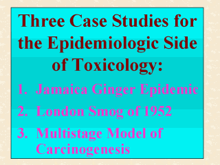 paralysis epidemic, the London smog of 1952, and the multistage model of carcinogenesis. The ginger jake paralysis episode was a result of delayed neourotoxicity induced by tri-ortho-cresyl phosphate, which is one of the organophosphates generally recognized as having the ability to selectively inhibit the acetylcholinesterase enzyme activity in mammals and hence to cause fatal hyperactivity of their acetylcholine neurotransmitter. The London smog of 1952 was a predictable environmental disaster involving fatal respiratory stress caused by breathing heavily air pollutants each with their acute toxic effects already well studied. It was this 1952 incident that had brought the issue of air pollution to global attention. Carcinogenesis is the biochemical as well as mechanistic process that characterizes the transformation of normal cells to neoplastic cells and the further development of neoplastic cells into a tumor. The focus with this case is to demonstrate how epidemiologic information can be used to confirm the multistage development of certain forms of human cancer. Numerous toxicologic events occurred in history. The above three case studies were selected primarily because they represent a wide spectrum of use of epidemiologic studies, even though these cases all occurred within a period of three decades running from the 1930s to the 1950s. |