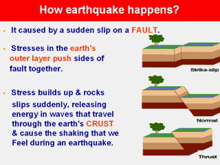 Faults are classified to Strike-slip and Dip-slip faults (normal,
