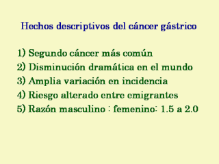 Cáncer gástrico representa el 10% de los canceres nuevos