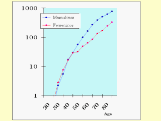 La razón masculino: femenino es casi 1 hasta el inicio de la edad de los 40’s. La predominancia masculina es señalada en edades tardías.