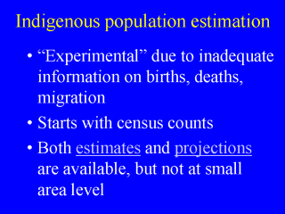 estimates and projections for the Indigenous population cannot be done in the
