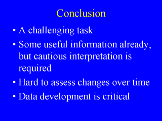 Monitoring the health and well-being of a population sub-group is more difficult than monitoring the population as a whole. This is especially true when the sub-group is relatively small, heterogeneous, and geographically dispersed, as is the case for Indigenous Australians. As this presentation has shown, some useful data are already available, but caution and careful interpretation, based on a good understanding of the strengths and weaknesses of the data, are needed. Despite data limitations, it is clear that Indigenous Australians are disadvantaged with respect to other Australians on a variety of measures of health and well-being. Many programs have been put into place to try to reduce the levels of health-related disadvantage, and their impact needs to be evaluated. However, substantial improvements in data quality and availability are required before we can assess with confidence any changes over time within the Indigenous population, or between Indigenous and non-Indigenous groups. The last few years have witnessed a number of important initiatives to improve data quality and availability, with a high level of commitment by key stakeholders. Progress is being made, but there is still a long way to go. Many of the data development issues that are relevant to monitoring the health and well-being of Indigenous Australians are also important in other countries and for other sub-groups. The path to success may not be universal, however, as it depends in part on history, politics, and other features that vary from place to place. |