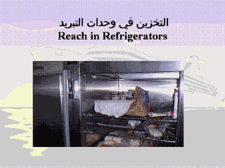 الثلاجة ولا يسمح بتناول الطعام أو الشراب في أماكن تصنيع الغذاء