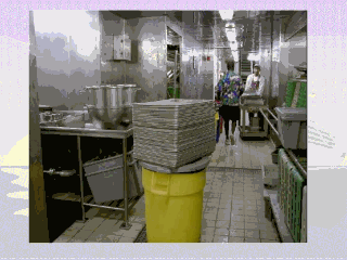 وضع الصواني على صندوق القمامة حيث لا يوجد مكان لوضع الأواني عليها