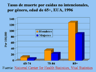 caídas en en hombres blancos de 85 años o mayores, seguido por