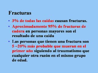 mortalidad relacionadas a caídas; 3~ 5 % de caídas resultan en otro