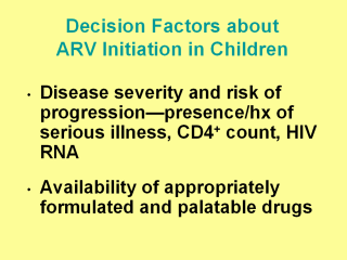 level; Availability of appropriate (and palatable) drug formulations for the child and pharmacokinetic information on appropriate dosing in the child’s age group. |