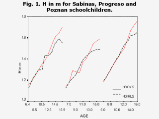 Poznan girls, being taller than the Progreso boys up to 13 years. The very