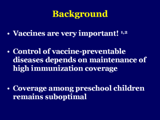 vaccines. Yet, in order for vaccine programs to be effective, high rates of immunization coverage must be maintained. Even in places like the US that have very successful immunization programs, vaccine coverage is often suboptimal in some geographic areas and sociodemographic groups. |