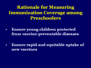 | It is important to measure immunization coverage among young children because many vaccines are administered at birth or early in life, and young children are often most vulnerable to the diseases prevented by vaccines. |