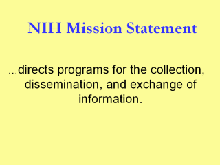 The NIH Mission statement reflects a similar message, that the scientific information itself is not valuable unless it is disseminated, exchanged…and used.