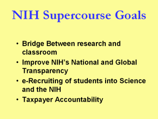 payers know little about the research workings of the NIH. A NIH Supercourse