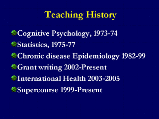 Dr. LaPorte’s teaching history ranging from Psychology to the Supercourse.