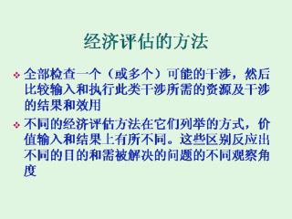 接下来是每种类型的经济评估的定义和例子。每类都随采用的观察角度和所提问题的不同而不