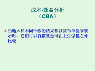 由于这是一个牵涉到社会大多数部门的广泛预防项目,成本和效益以货币单位来定值,从而可和其它的政府项目相比较。