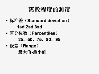 数据的离散程度可以用标准差或百分位数表达。当数据非正态分布时用标准差不恰当。