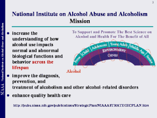 health care. The identification of research priorities and resource development areas for alcohol research is an ongoing process at NIAAA. For more information on our plans for the future, please click on the following link to the five year strategic plan: pubs@niaaa.nih.gov/publications/StrategicPlan/NIAAASTRATEGICPLAN.htm