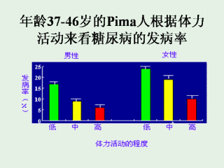体力活动是2型糖尿病发生的另一个重要因素。活动最少的受试者较活动最多的2型糖尿病患病率高3倍。男性、女性均如此。