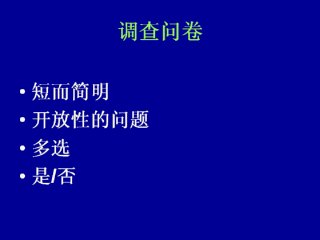 问卷必须短而简明。太多的问题会使受试者厌烦,并会导致回击骚扰采访者的错误回答。如果问题不被用于分析,为什么不首先询问?
