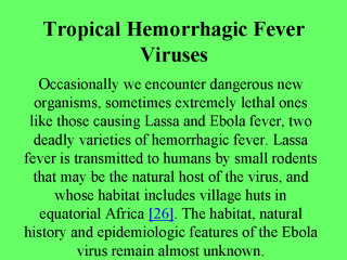 hemorrhagic fevers. As humans encroach further on previously uninhabited wilderness areas