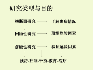 我现在来总结一下刚才介绍的这三种研究方法。横断面研究的目的是为了更好地了解疾病和与疾病相关的危险因素。回顾性研究能够对可能危险因素与疾病进行估测(提出病因假设),而通常最后是由前瞻性研究来验证。因此,回顾性研究的真实性不及前瞻性研究。现在,在糖尿病疾病的预防、控制、干预、教育以及治疗等各个领域中,通过这些流行病学研究得到的结果已经被广为应用。