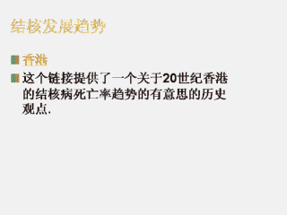 这个链接附有一份图表,阐明了香港的结核相关性死亡的多变模式,以及它如何与不同的历史性社会政治事件相关连.