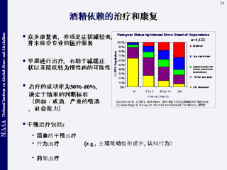 20年或更长饮酒史的人仅有6.9%依旧依赖。类似的,新近开始饮酒者仅有6.0%彻底戒除,而20年或更长饮酒史的人则有61.0%彻底戒除。