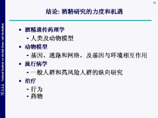 很多领域的认识:与饮酒相关的正常及异常生物行为;促进诊断、预防、治疗,以及最终提高医疗