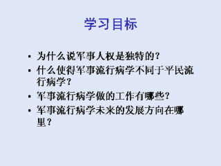 在这个演讲中我将展示给你们世界各国军队中的军事流行病学家清晨离开家工作是做的一些事情。当到最后一张幻灯时我希望你能明白为什么我的工作有趣并且充实。