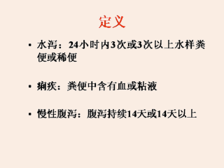 次液体或水样粪便。粪便的形状比排便的次数更重要。频繁的排成形的粪便不是腹泻。