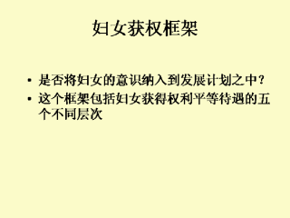 这个框架是由Sara Hluupekile Longwe构建的,他是赞比亚性别平等与妇女权益工作组织的成员(UNICEF)。这个框架也可以在性别公正、人类活性与发展中心中出现。