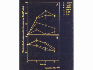 (IL-6) is powerfully able to inhibit the insulin stimulated deposition of glycogen by