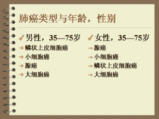 岁的年龄段当中,鳞状上皮细胞癌是男性中最常见的一种肺癌,而腺癌是女性中最常见的一种肺癌。大细胞癌在两种性别中都不太常见。在