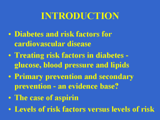 patients with diabetes. I am going to discuss primary and secondary prevention in diabetic