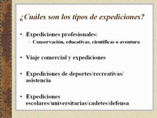 Hay muchos tipos de expediciones, Personal médico se involucrará en todas ellas.