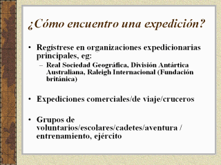 Expediciones están ocurriendo todo el tiempo. Hay un rango de organizaciones expedicionarias establecidas, compañías de viaje, grupos de voluntarios.