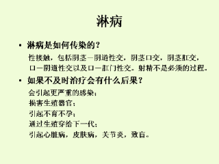 免疫效应,所以可能发生再感染。淋病往往是通过在宫颈,尿道直肠或者喉粘膜取体液样本进行实验室检查来诊断的。尿检可以用来诊断尿道淋病,内科常用革兰染色作为一个快速的诊断方法。