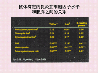 子和慢性感染标记物间有相关性,但也发现其与肥胖标记的相关性更强。
