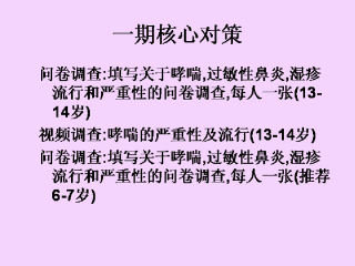 问卷调查:填写关于哮喘,过敏性鼻炎,湿疹流行和严重性的问卷调查,每人一张(推荐6-7岁)