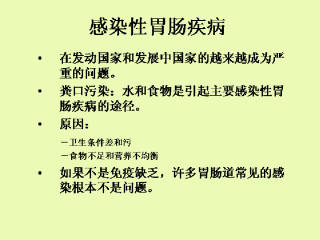 感染性胃肠疾病是逐渐成为全世界严重的问题,由于高人口密度、快速和大量的人口流动、水质的变差和精细农业加重了这一问题,这些增加了食物的污染、感染性介质的传播和耐药性的产生。